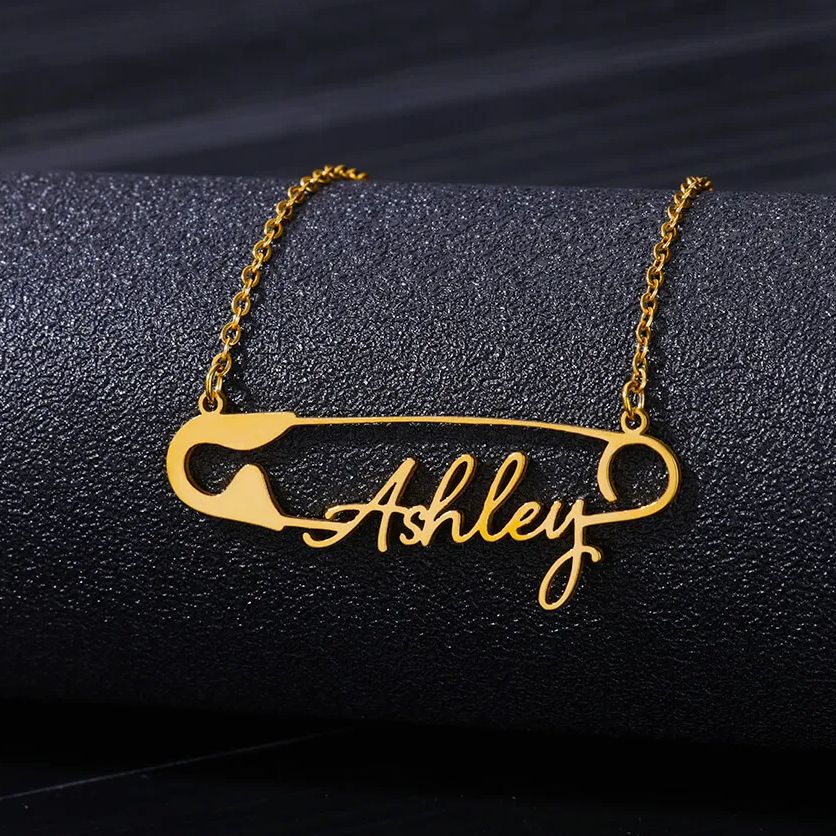Custom Name Pin Necklaces For Women Gold Color Personalized Name Stainless Steel Pin Necklace Christmas Party Jewelry Gift Silver Color – Sumsfashion