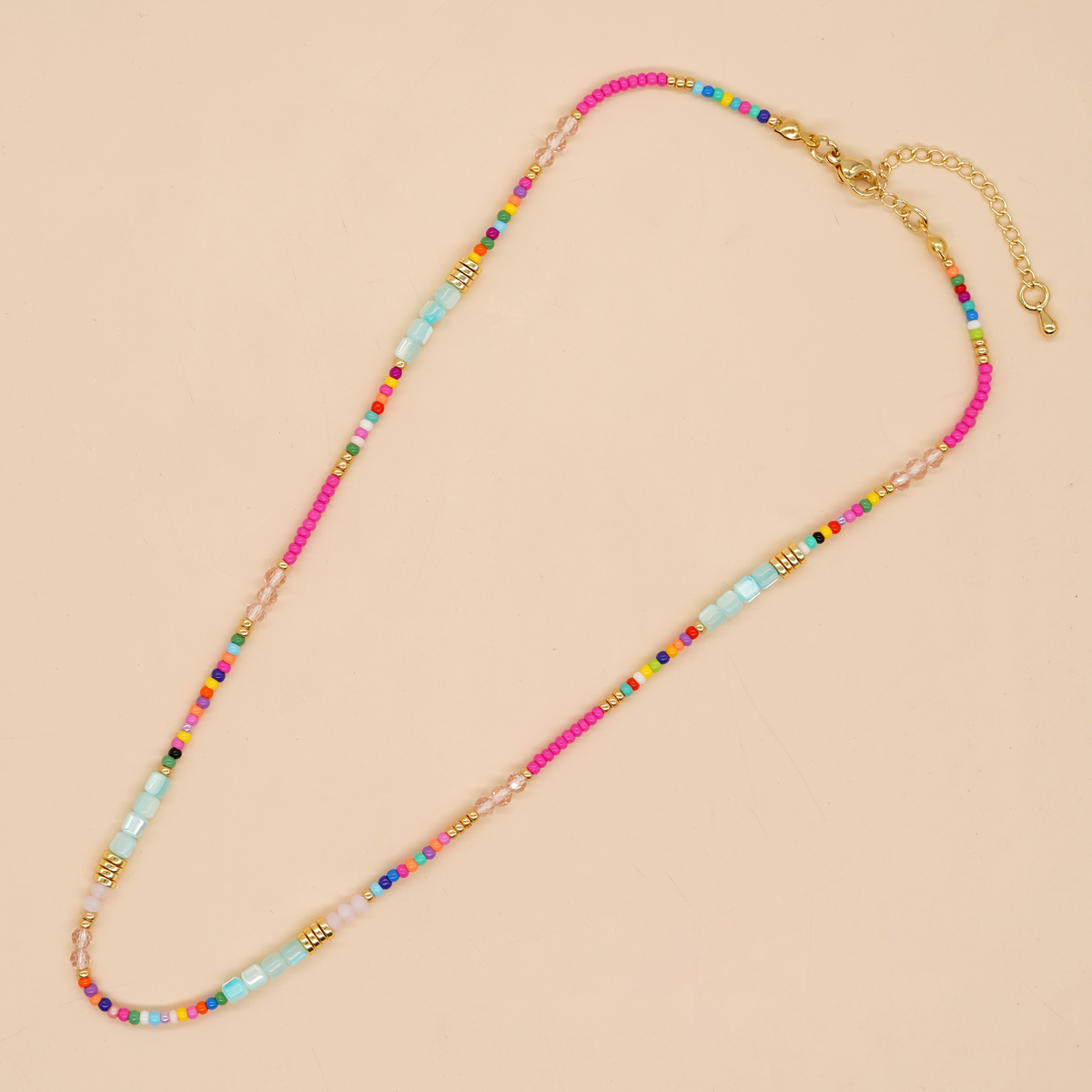 Go2boho Boho Beaded Necklaces For Women Rainbow Colorful Summer Bohemian Mixed Bead Crystal Necklaces Choker Beach Jewelry – Sumsfashion